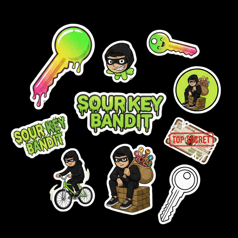 Spread the lore with an authentic Sour Key Bandit sticker set. Join the movement.